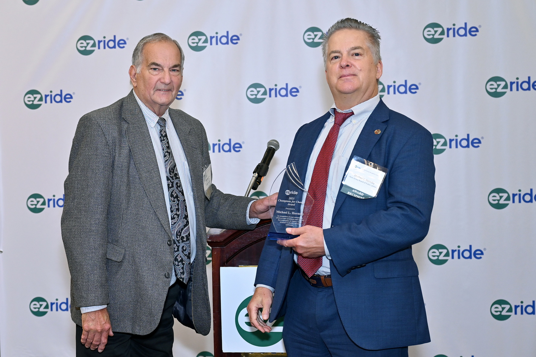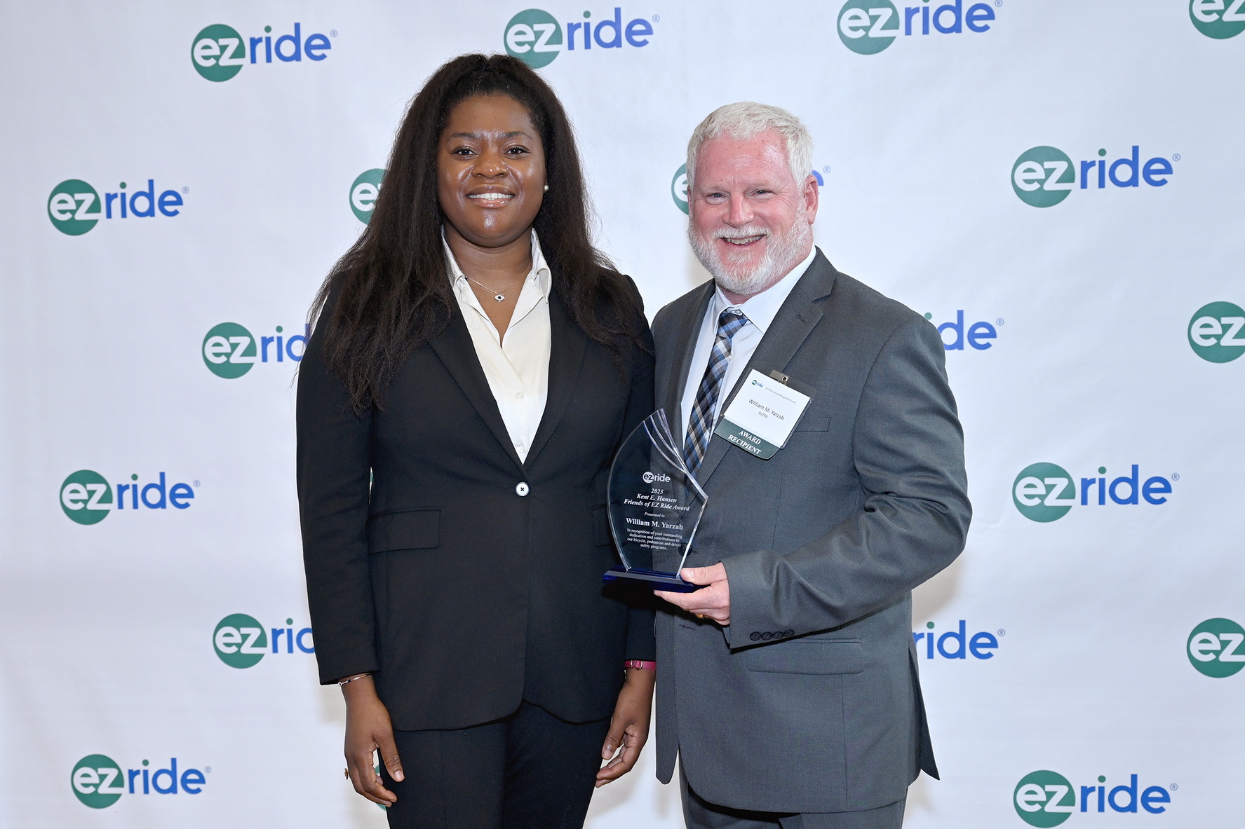 We extend our congratulations to William M. Yarzab, Senior Planner at NJTPA, recipient of the inaugural Kent E. Hansen Friends of EZ Ride Award for advancing pedestrian and driver safety through the Street Smart NJ program. Congratulations also to Michael L. Hornsby, Chief Project Development Officer at the NJ Board of Public Utilities, honored with the Champion for Change Award for his leadership in electric vehicle safety and first responder education.